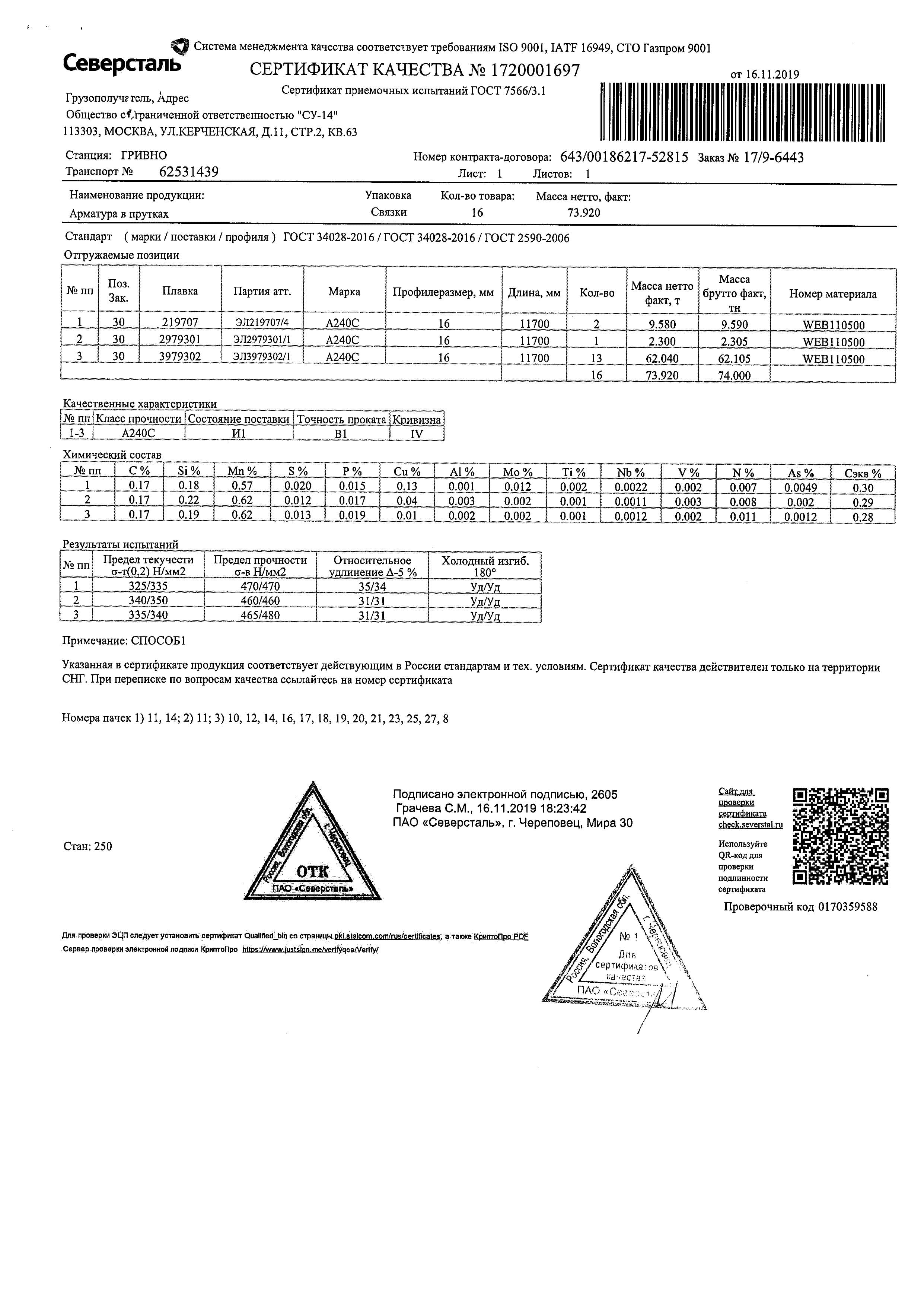 Наша металлобаза занимается комплексными поставками строительных материалов от ведущих производителей в отрасли стройматериалов. Марка у данной арматуры - А1, а диаметр- 16 мм. Выпускается с использованием следующих марок стали: А240. Цены на всю нашу продукцию указаны из расчета за 1 тонну. Возможна резка под необходимый Вам размер.