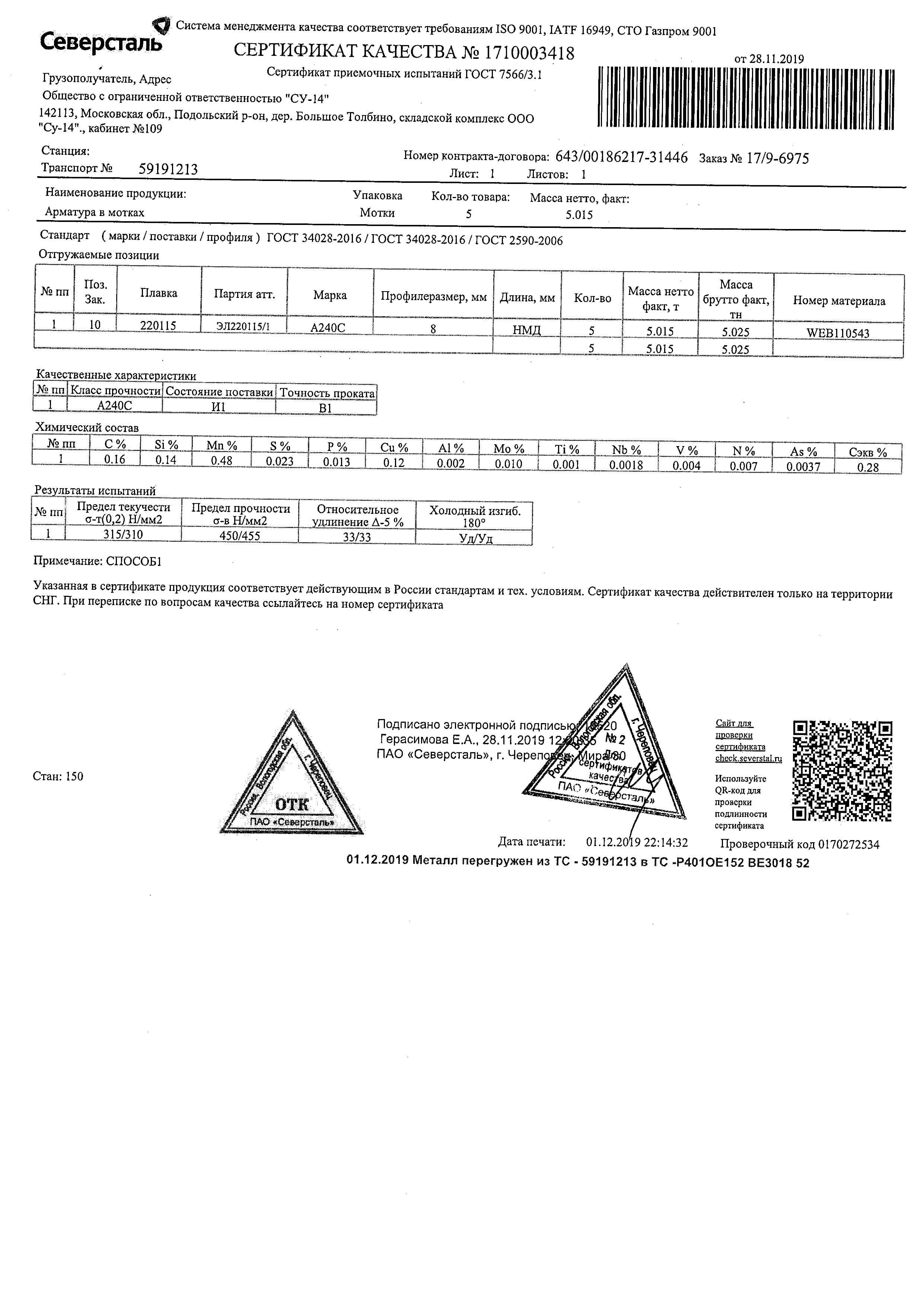 С каждой товарной позицией мы предоставляем все сертификаты и паспорта качества, а также товарно-транспортную накладную.