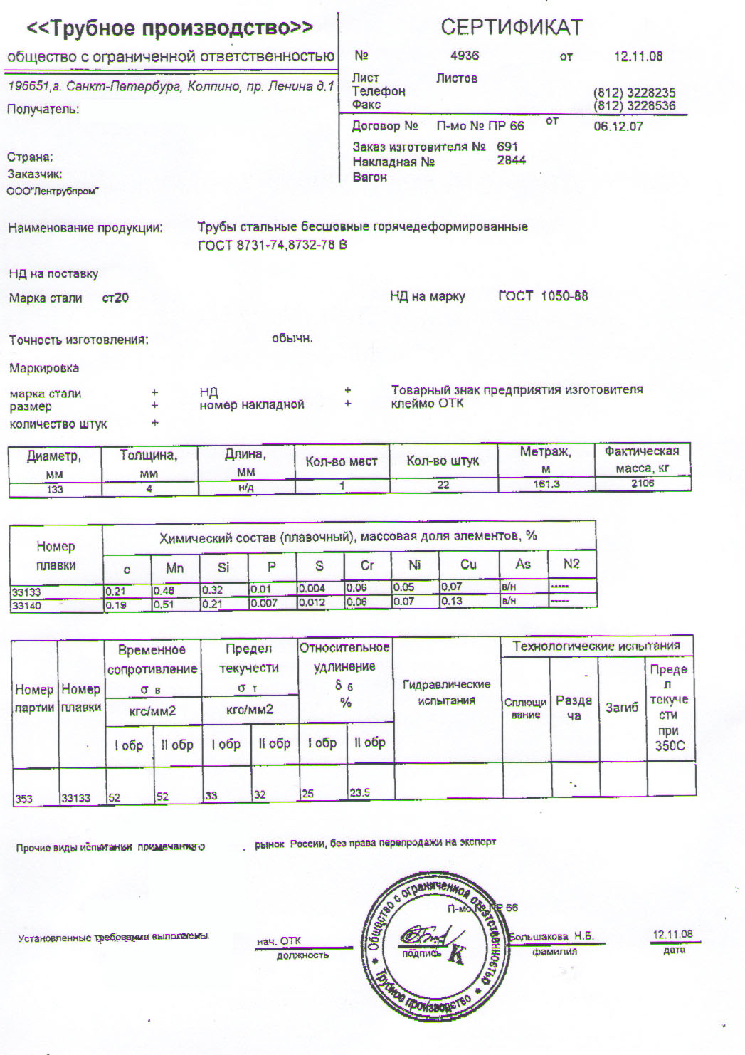 С каждой товарной позицией мы предоставляем все сертификаты и паспорта качества, а также товарно-транспортную накладную.