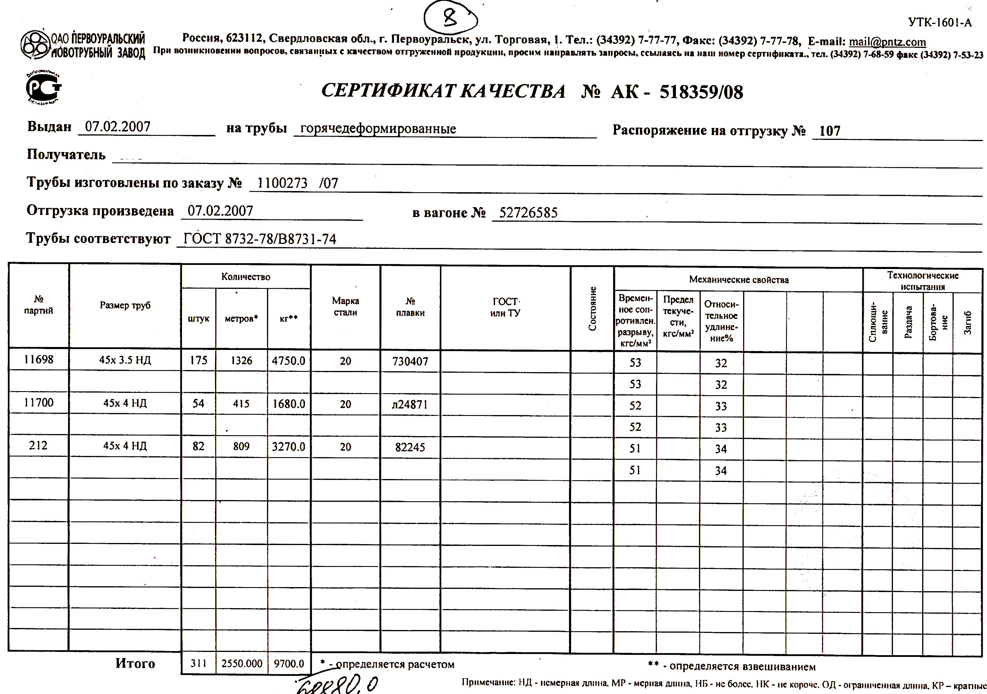 С каждой товарной позицией мы предоставляем все сертификаты и паспорта качества, а также товарно-транспортную накладную.