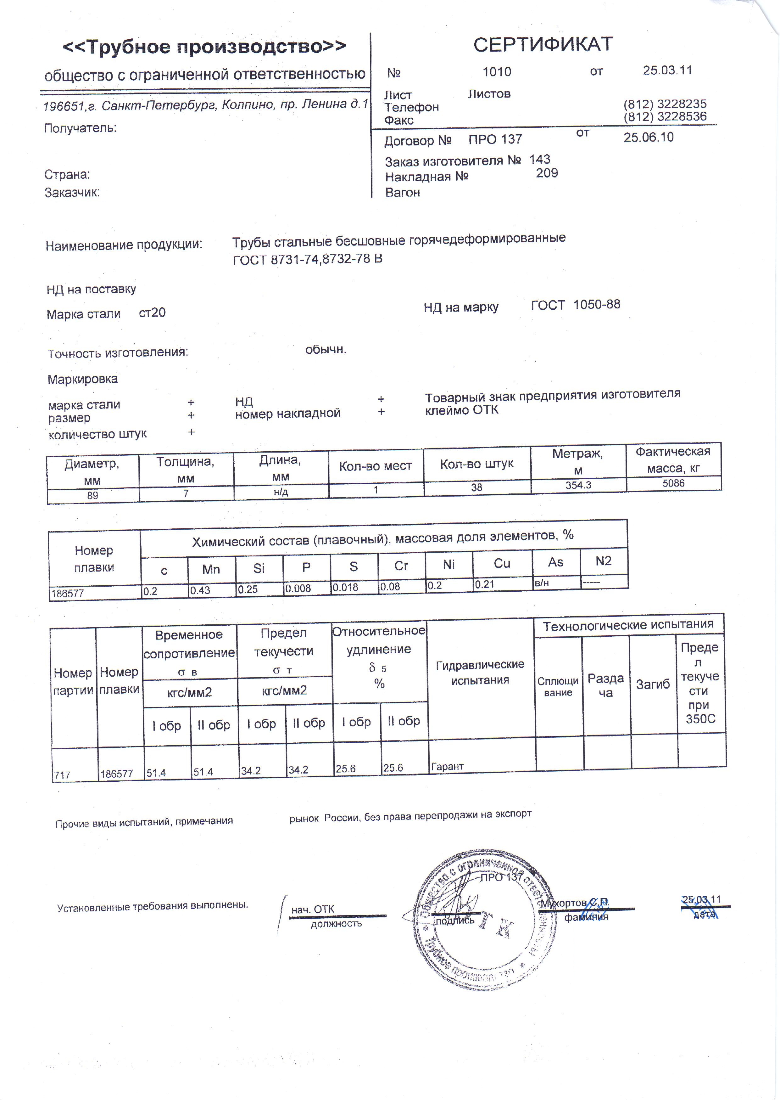 С каждой товарной позицией мы предоставляем все сертификаты и паспорта качества, а также товарно-транспортную накладную.