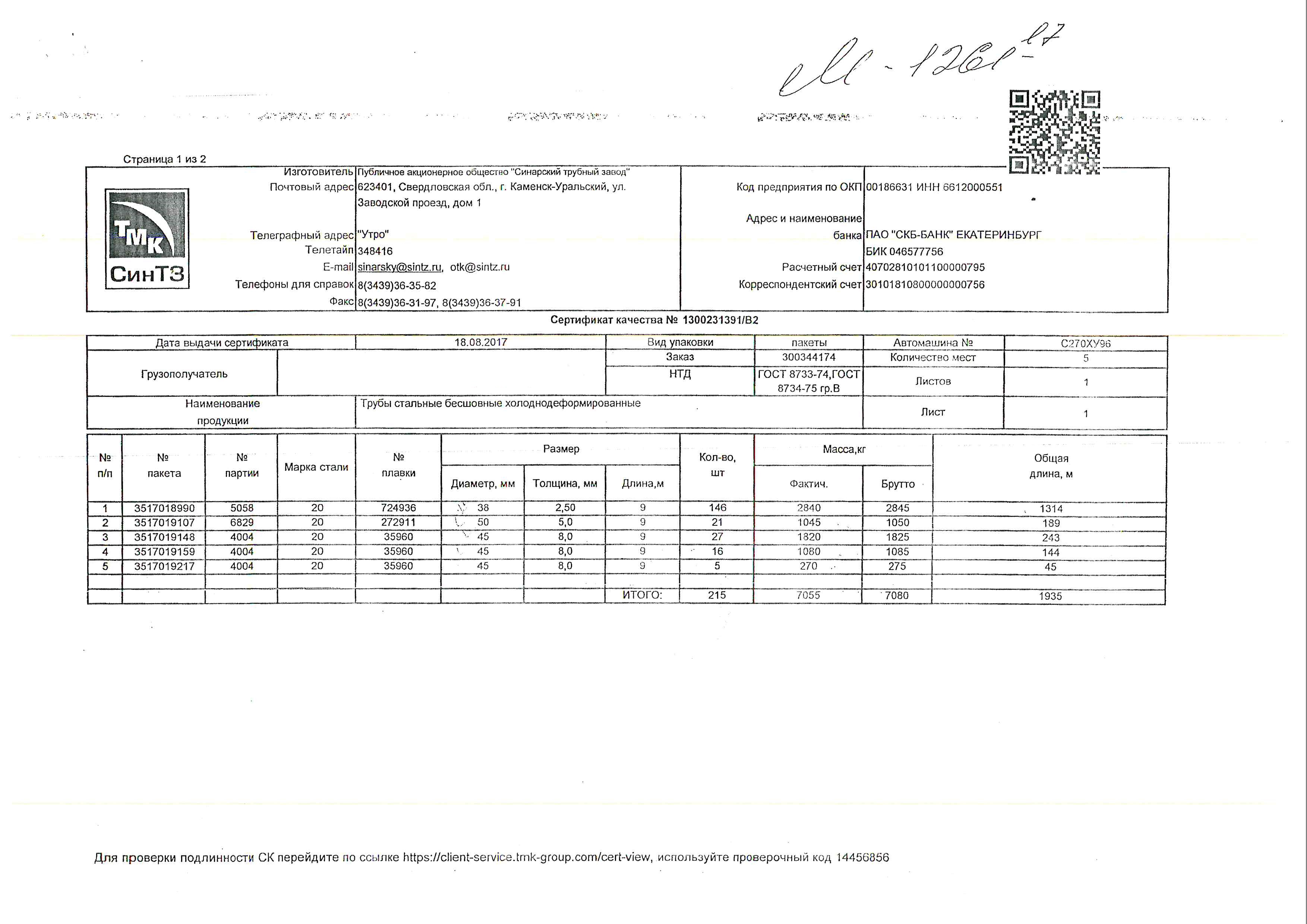 С каждой товарной позицией мы предоставляем все сертификаты и паспорта качества, а также товарно-транспортную накладную.