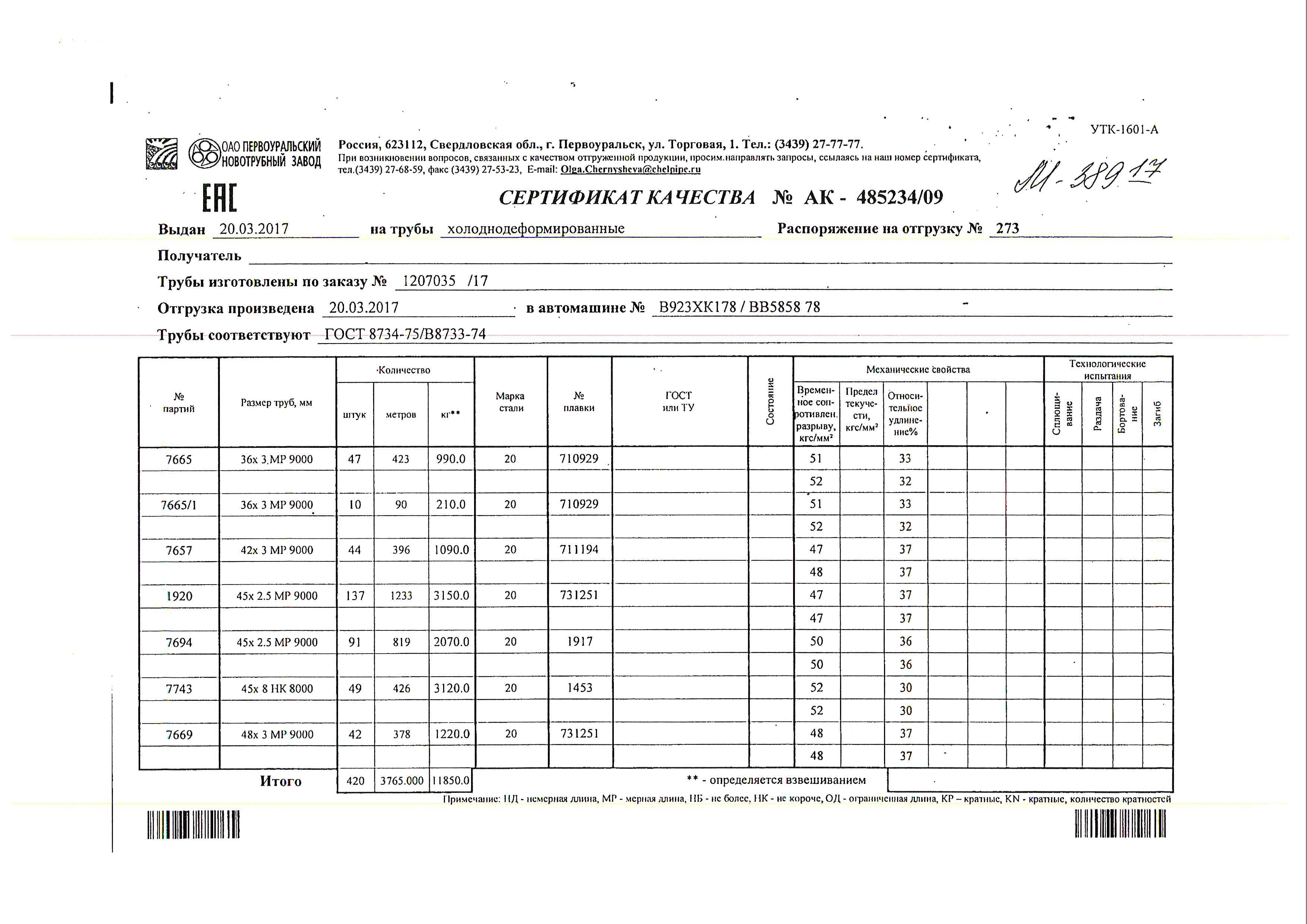 С каждой товарной позицией мы предоставляем все сертификаты и паспорта качества, а также товарно-транспортную накладную.