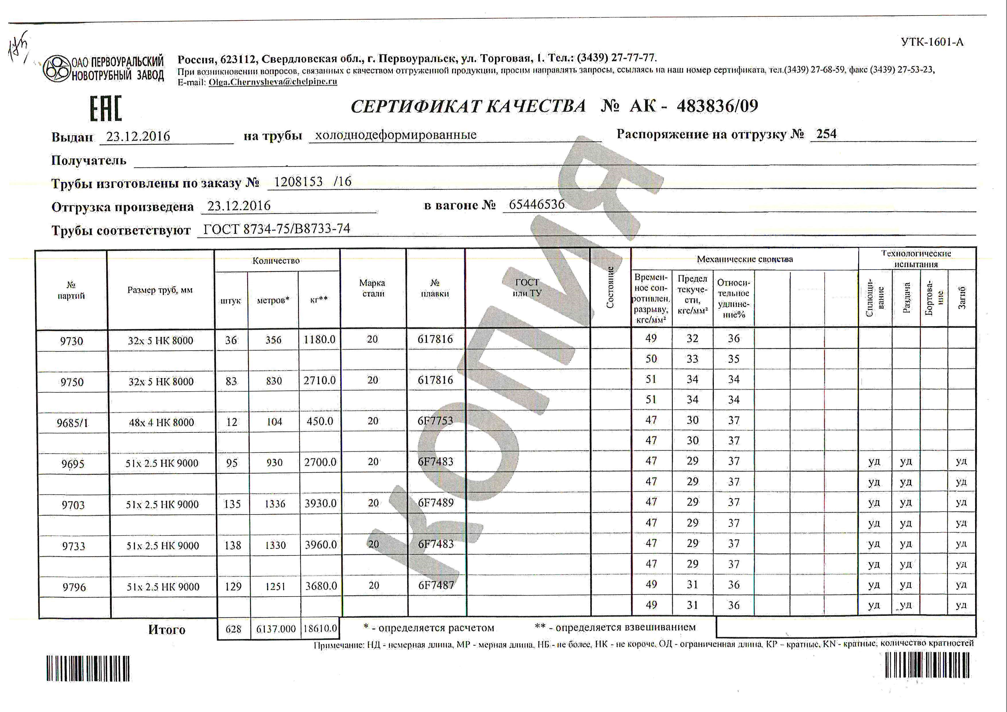 С каждой товарной позицией мы предоставляем все сертификаты и паспорта качества, а также товарно-транспортную накладную.