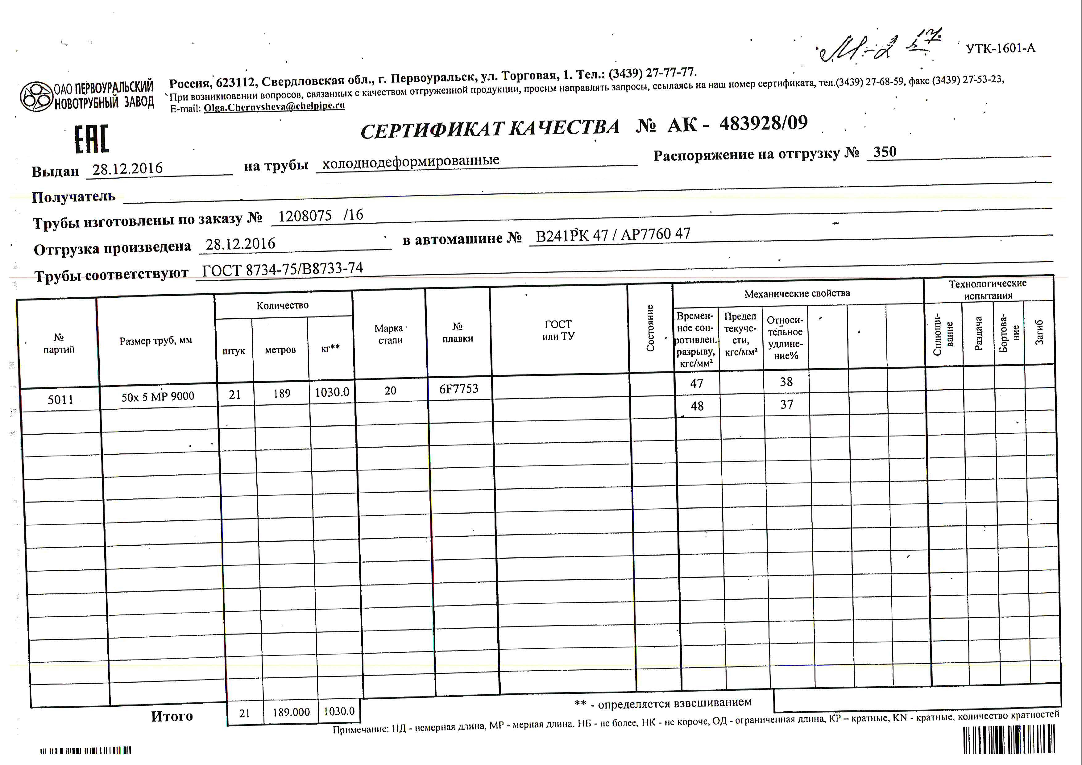 С каждой товарной позицией мы предоставляем все сертификаты и паспорта качества, а также товарно-транспортную накладную.