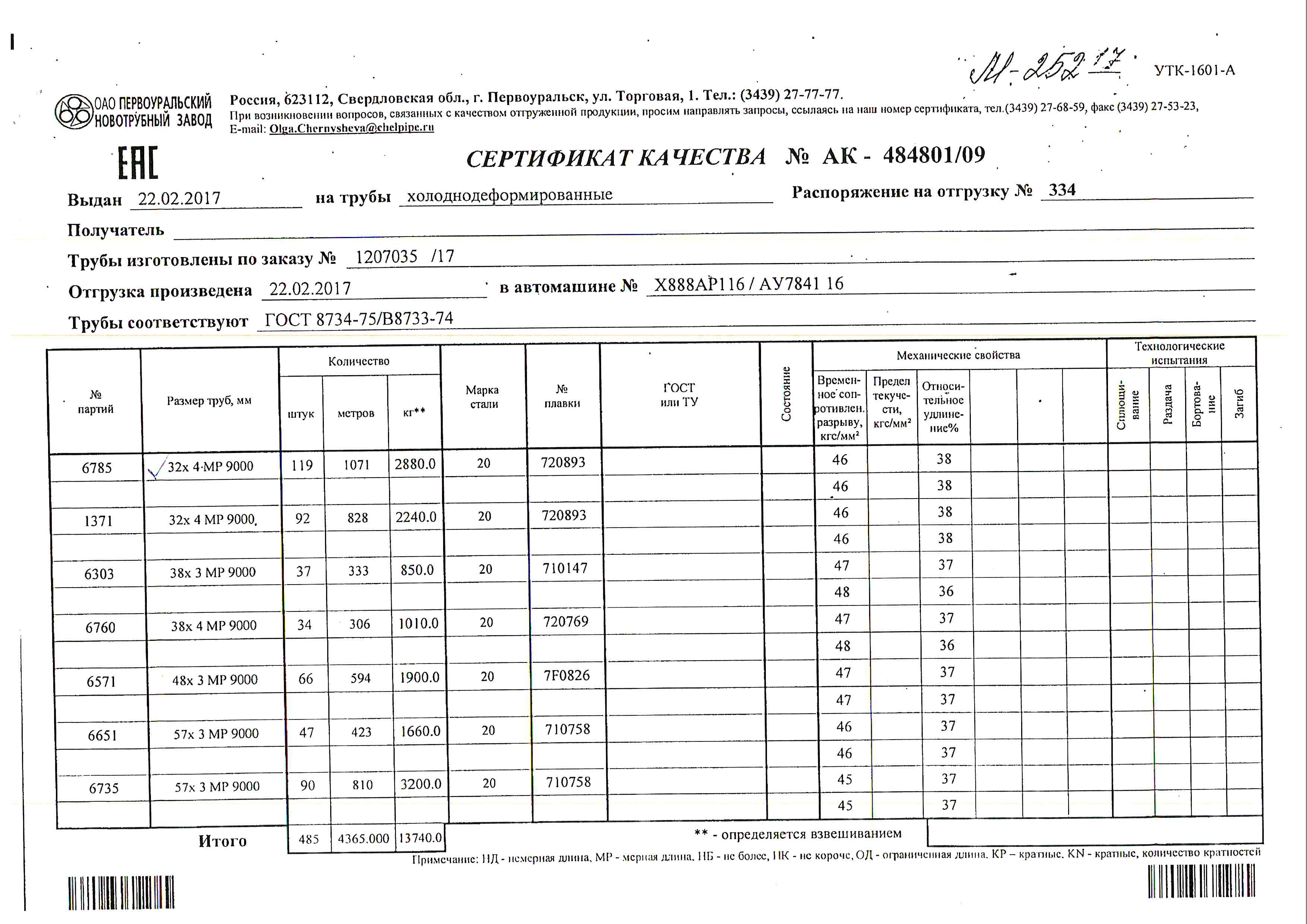 С каждой товарной позицией мы предоставляем все сертификаты и паспорта качества, а также товарно-транспортную накладную.