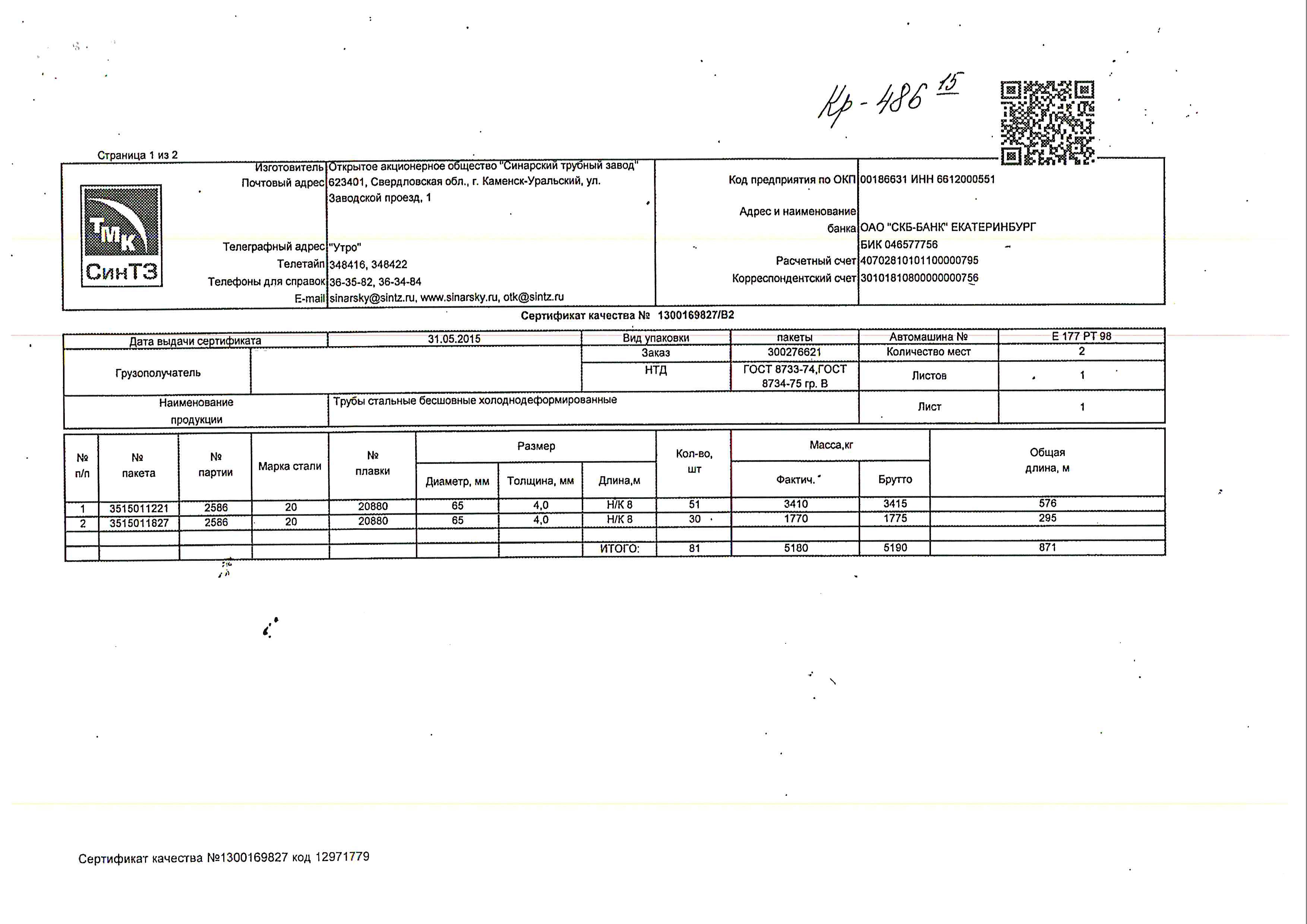 С каждой товарной позицией мы предоставляем все сертификаты и паспорта качества, а также товарно-транспортную накладную.