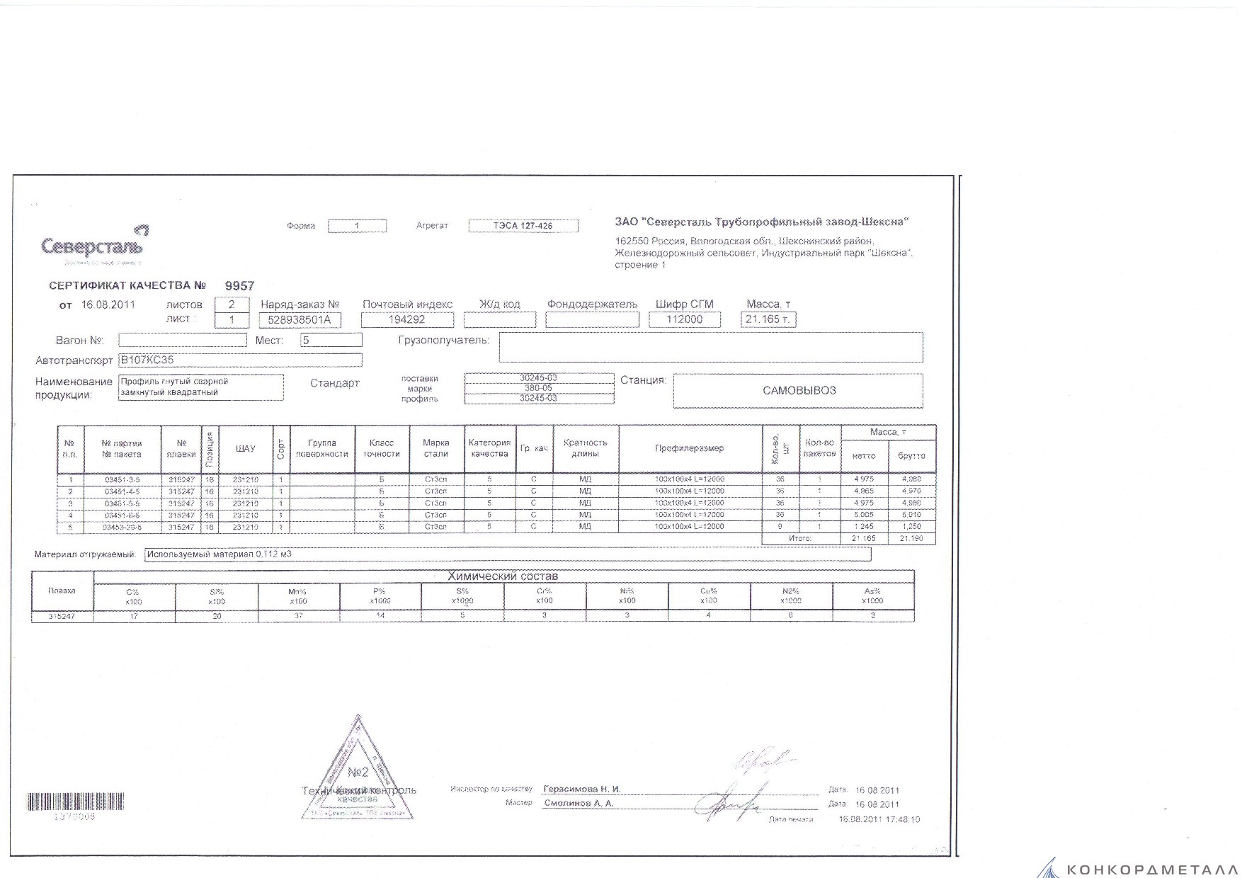 С каждой товарной позицией мы предоставляем все сертификаты и паспорта качества, а также товарно-транспортную накладную.