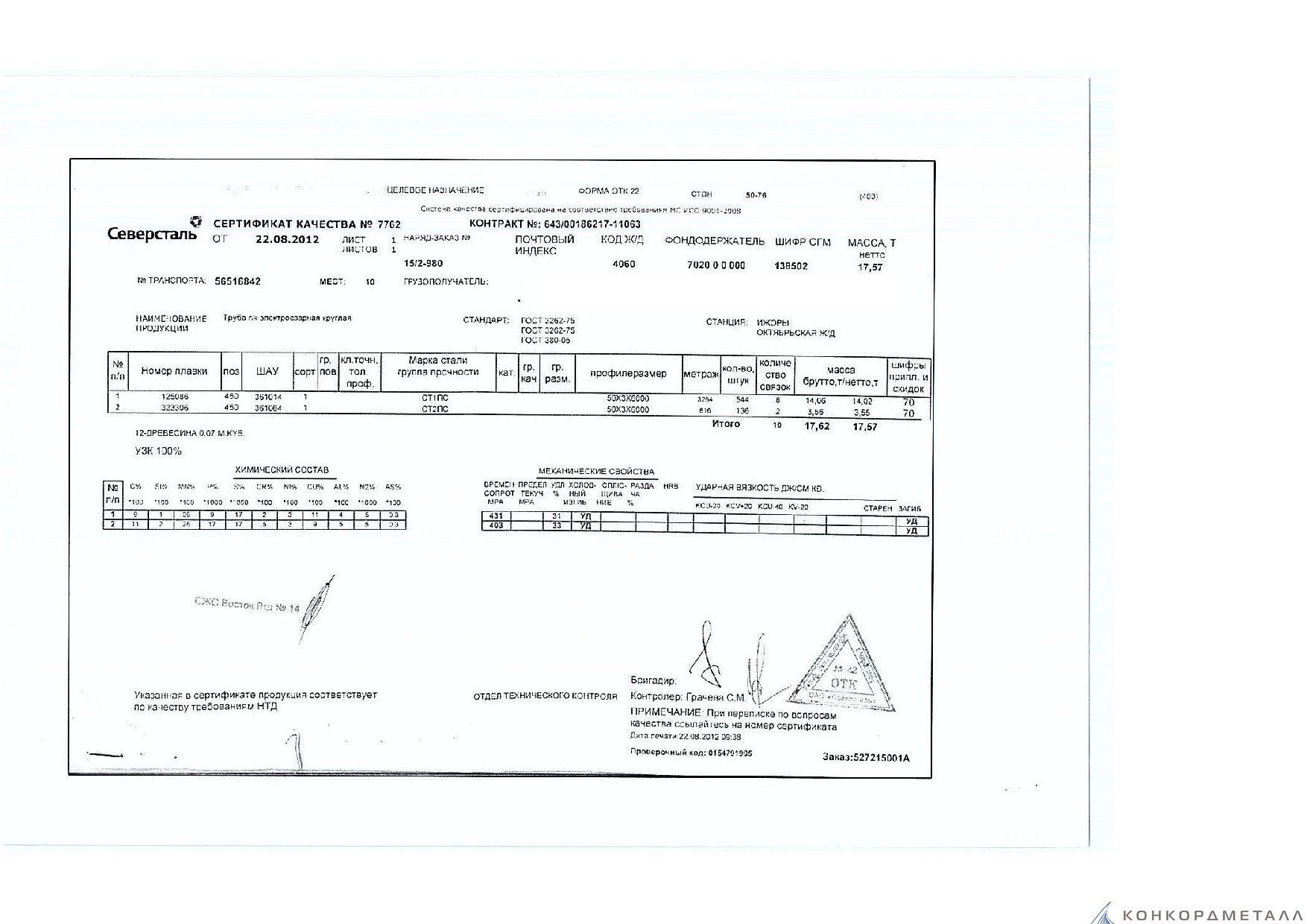 С каждой товарной позицией мы предоставляем все сертификаты и паспорта качества, а также товарно-транспортную накладную.