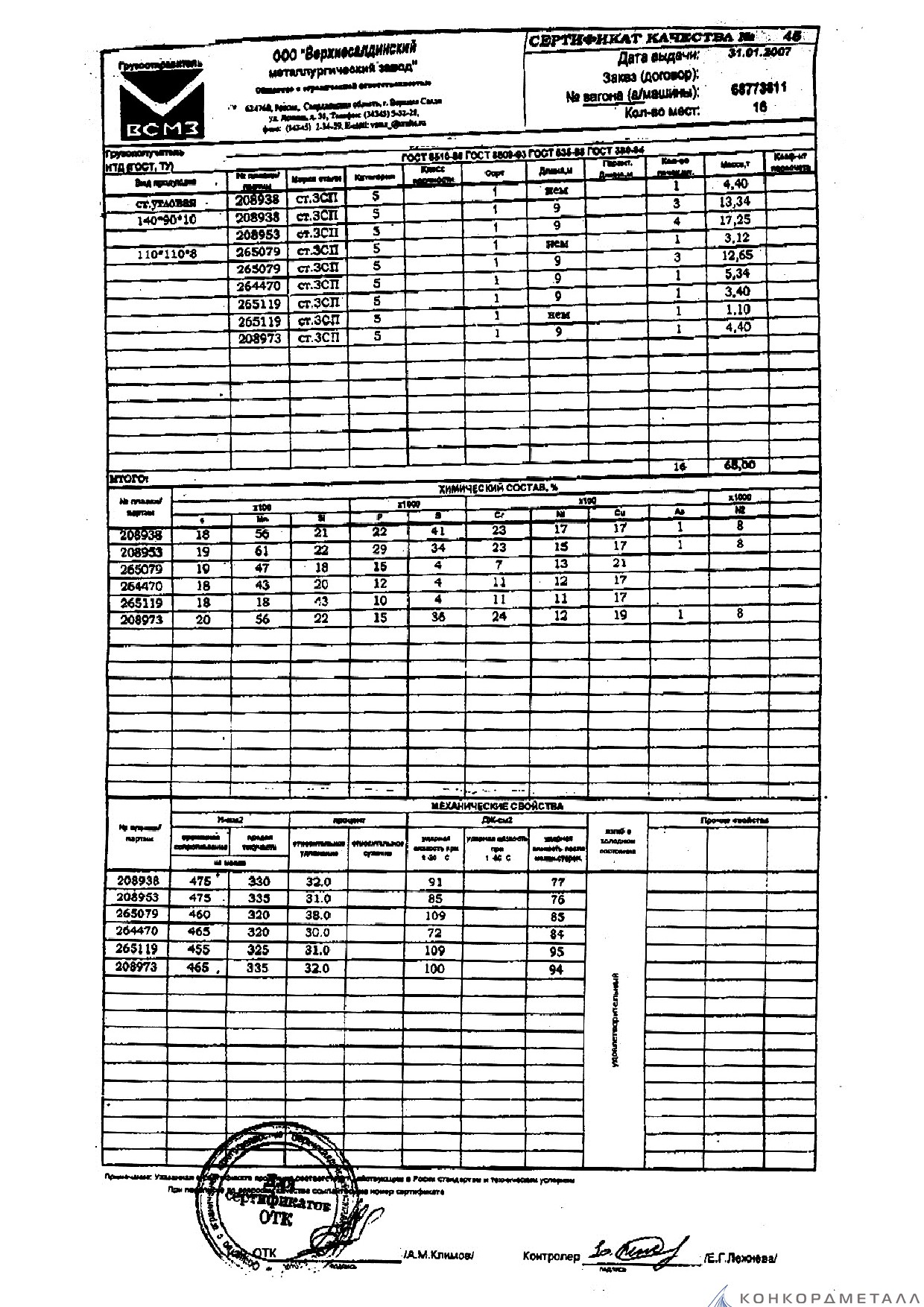 С каждой товарной позицией мы предоставляем все сертификаты и паспорта качества, а также товарно-транспортную накладную.